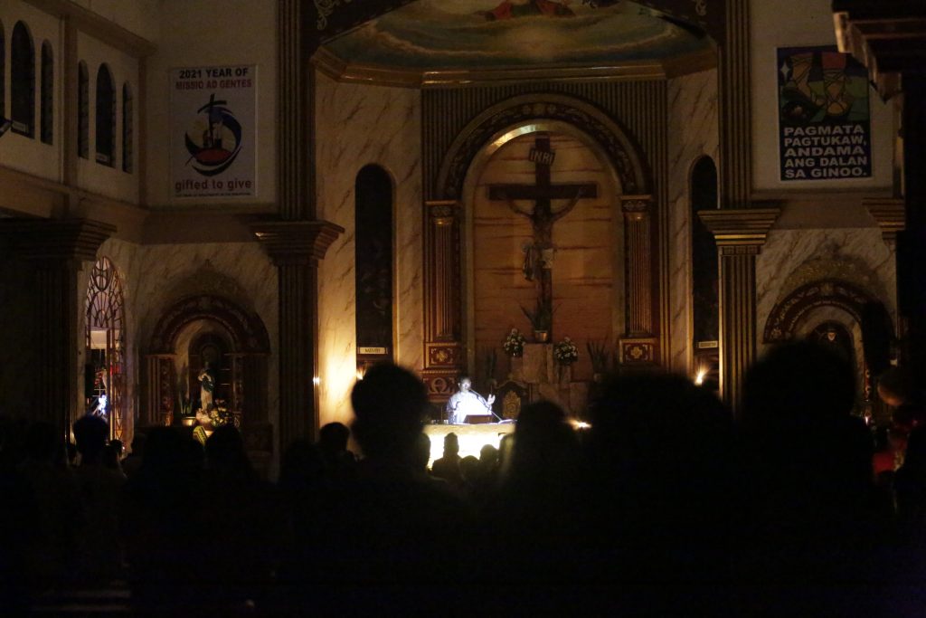 Rico Amolares, 19, said he felt the “presence of God” during the sermon. “Despite the difficulty, our priest conducted a mass with very few candles,” Amolares told AFP.
